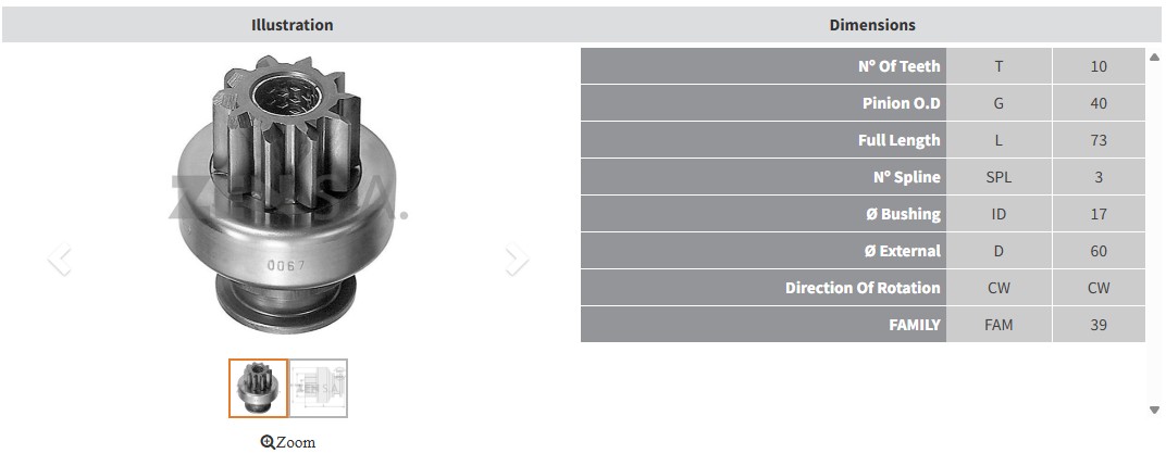 Oem Reference number ZN0067 |